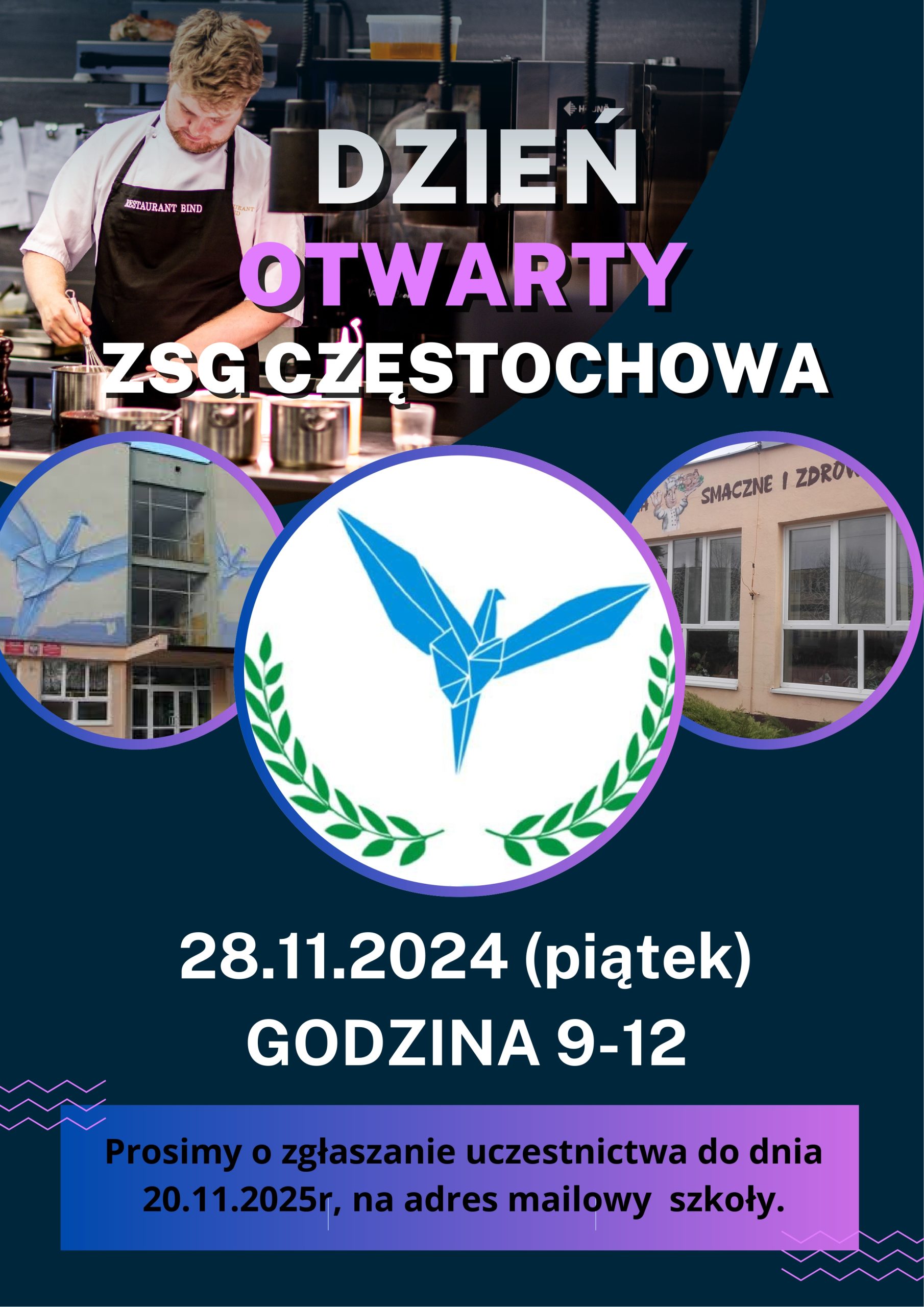 Zespół Szkół Gastronomicznych w Częstochowie serdecznie zaprasza do udziału w Dniach Otwartych, które odbędą się 28 listopada 2025 r. (piątek) w godz. 9:00–12:00 w naszej szkole.